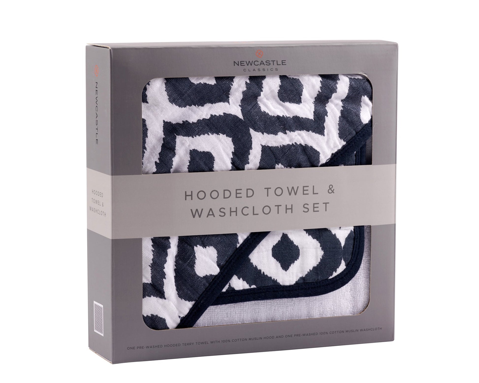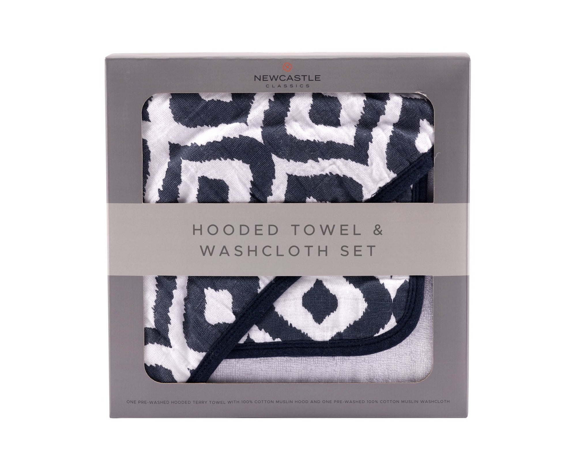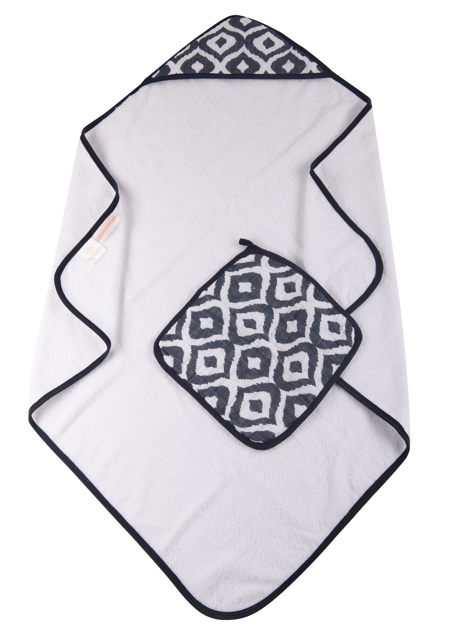 Moroccan Blue Cotton Hooded Towel and Washcloth Set