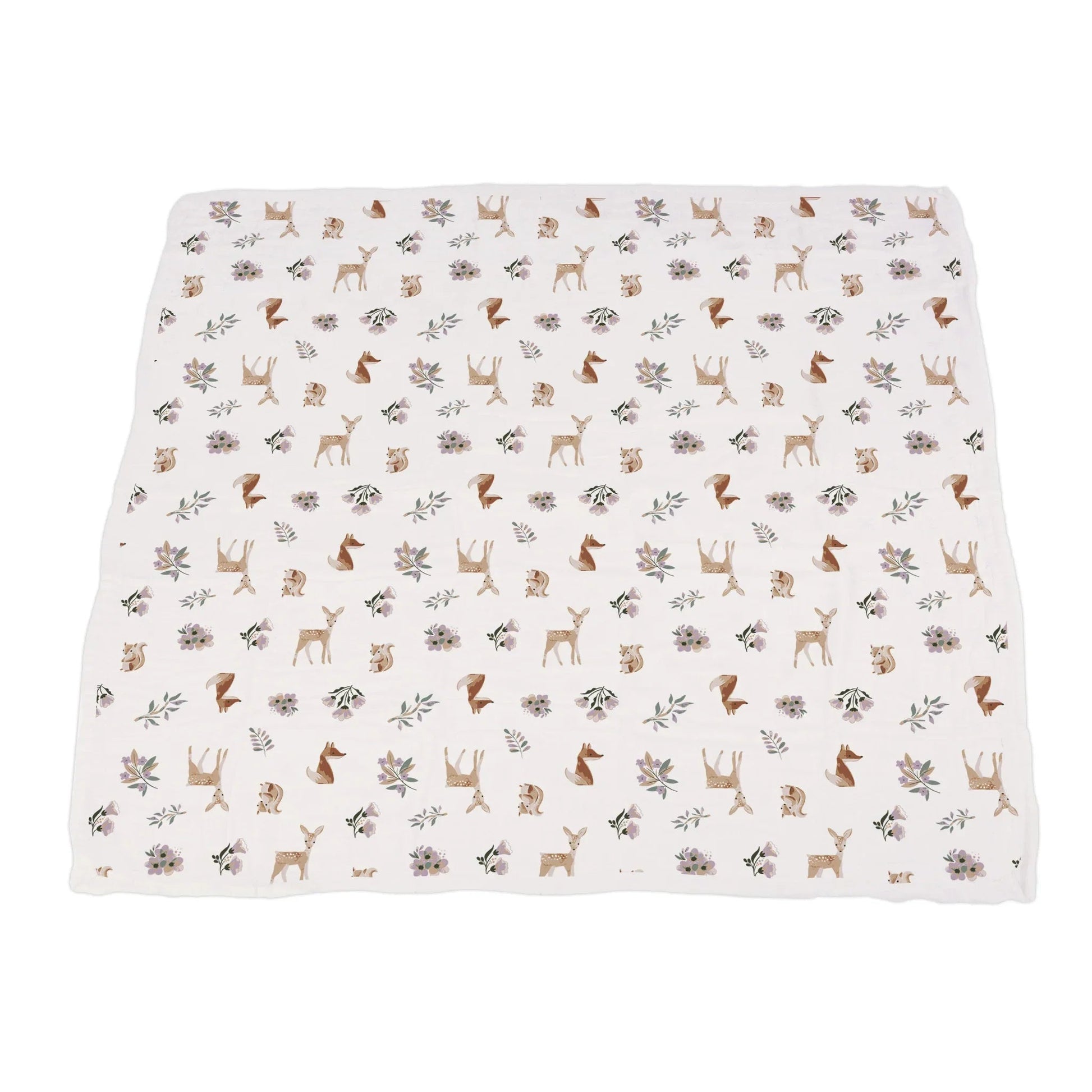 Wrap your little ones in pure comfort with the Sierra Fox and Deer and Orchid Lavender Cotton Newcastle Blanket. This cozy blanket features four layers of 100% natural cotton muslin, ensuring a soft touch against your child's skin.