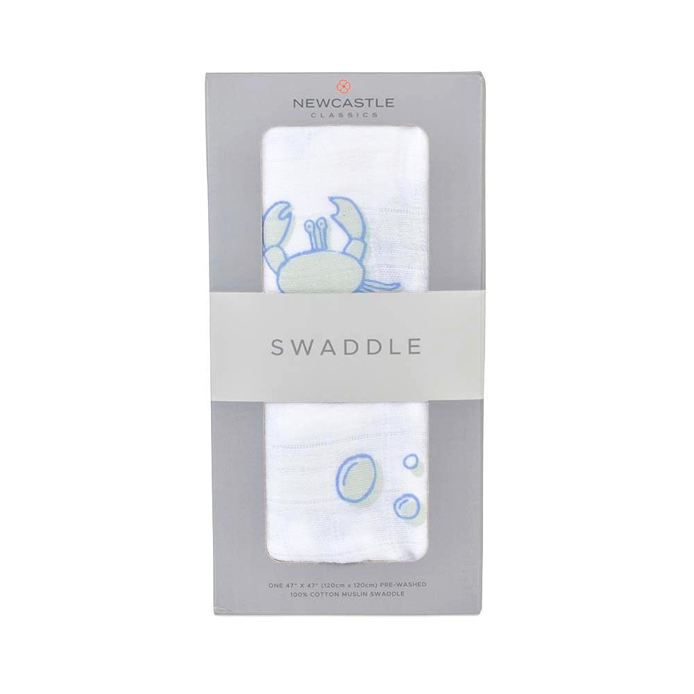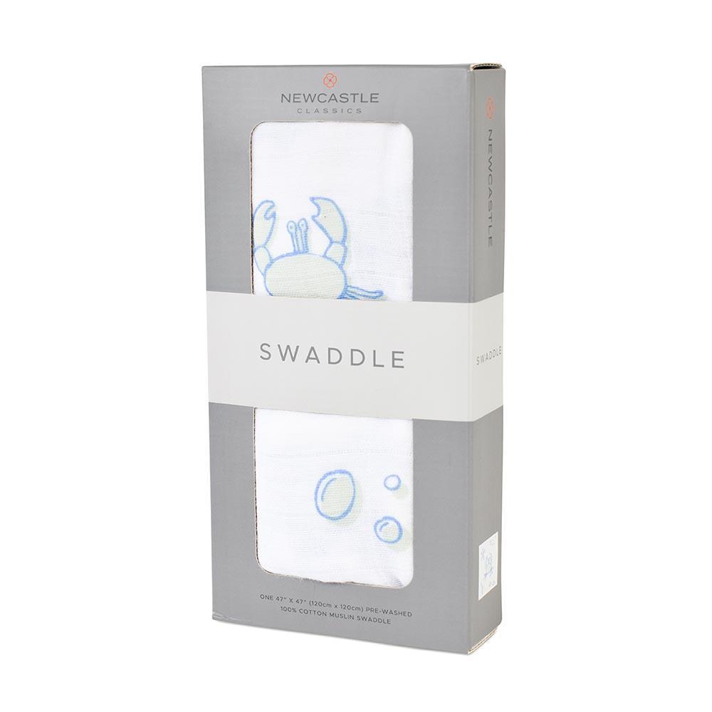 Dive into comfort with the Ocean Swaddle, crafted from 100% natural cotton muslin. This soft and breathable fabric wraps your little one in a gentle touch, ensuring they feel cozy without overheating.