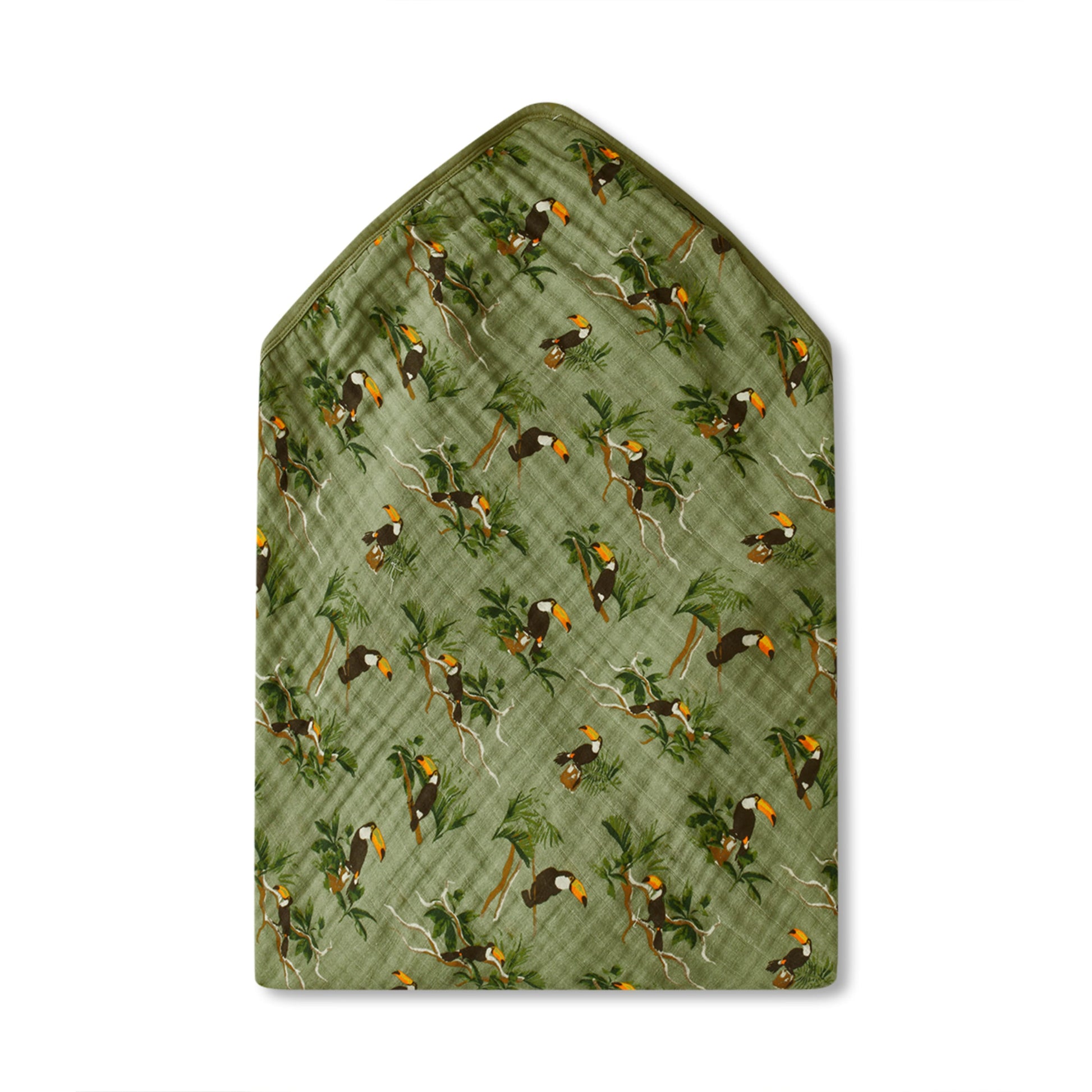 Wrap your little one in cozy comfort with our Organic Hooded Swaddle Blanket in the Toucan print. Crafted from 100% cotton, this blanket features a convenient hood for added warmth and security. Perfect for snuggles and nap time, it's a must-have essential for newborns and babies.