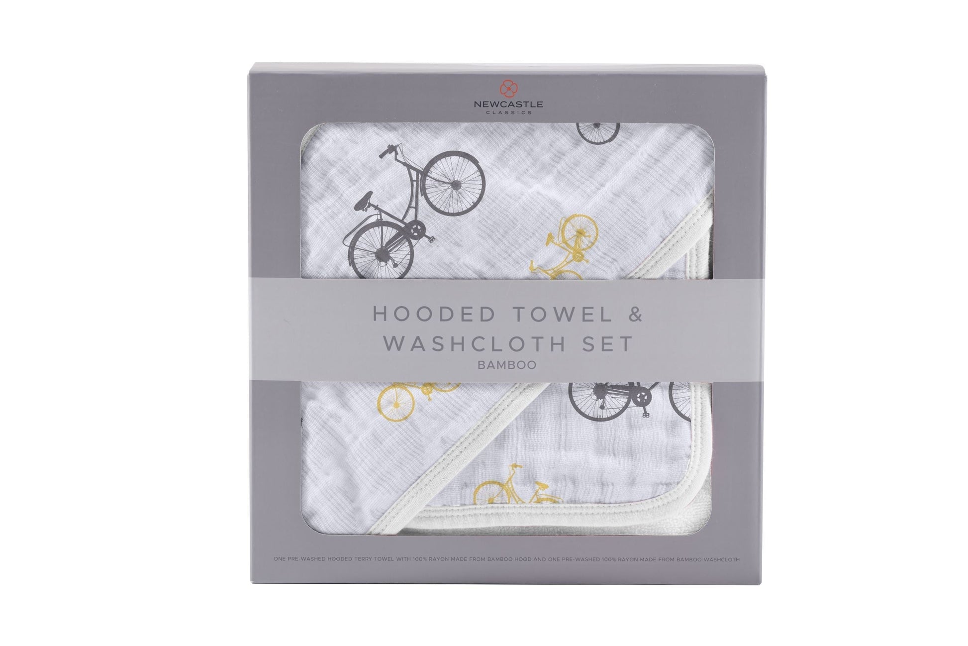 Vintage Bicycle Bamboo Muslin Hooded Towel and Washcloth Set