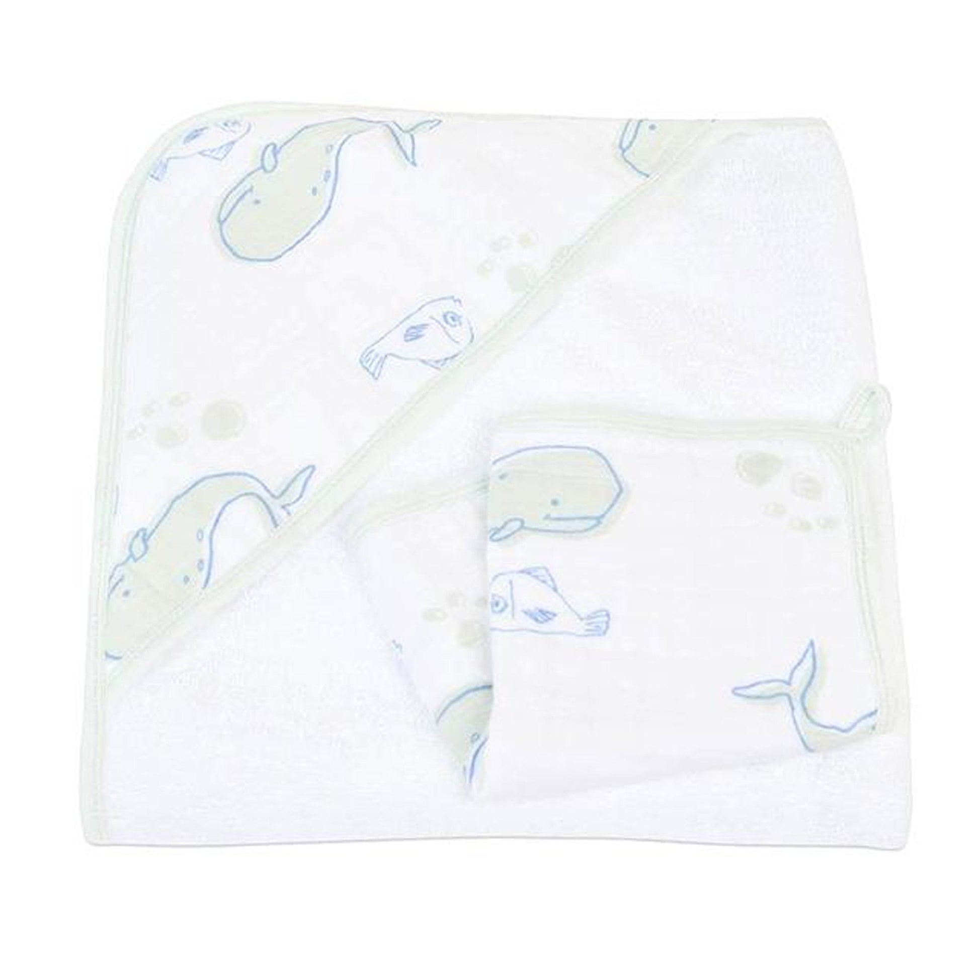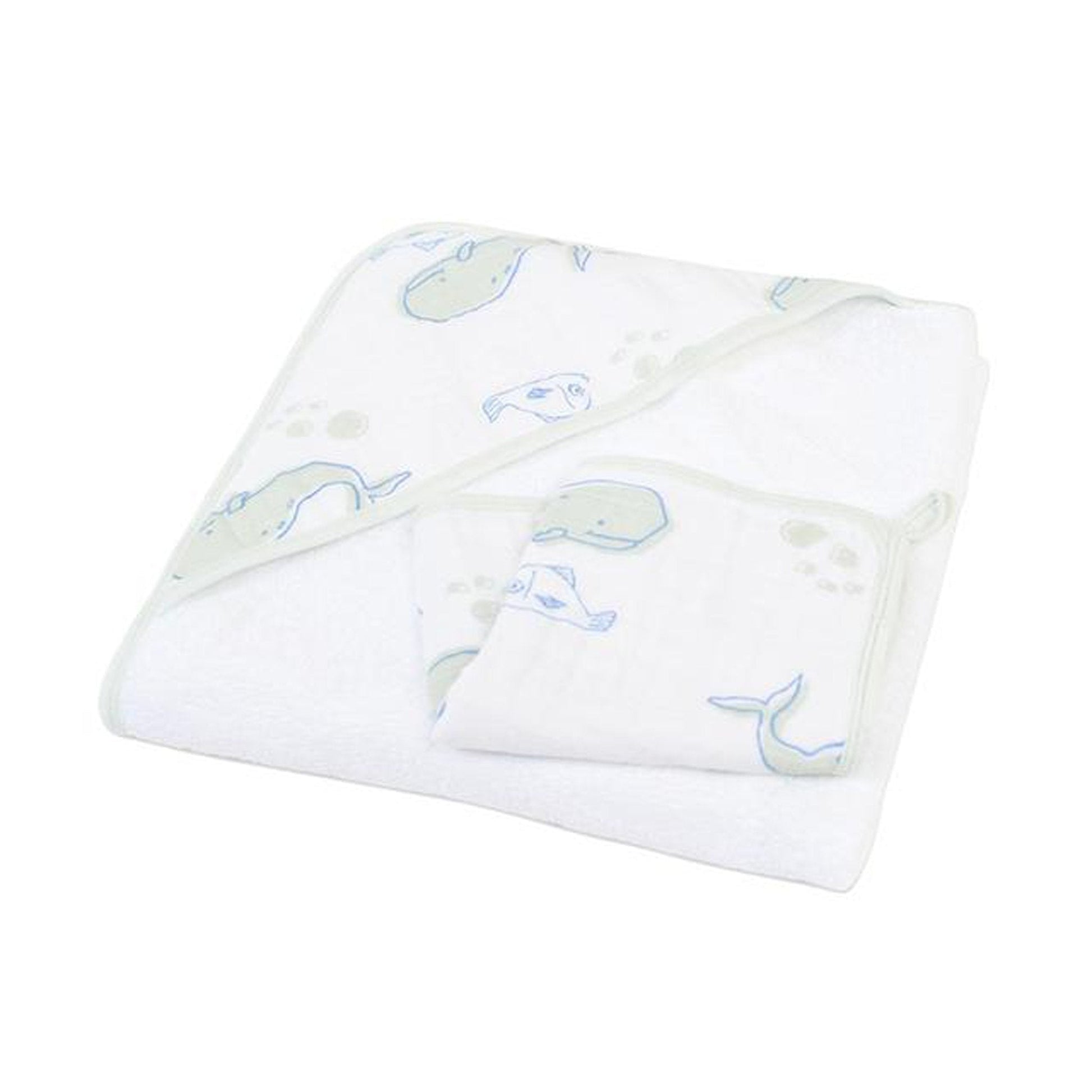 Make bath time fun with our Whale Hooded Towel and Washcloth Set! This cozy set features a charming whale design that your little one will adore. The towel measures 35" x 35", providing ample coverage for wrapping up after a splashy bath. The matching washcloth, sized at 12" x 12", is perfect for gentle cleaning.